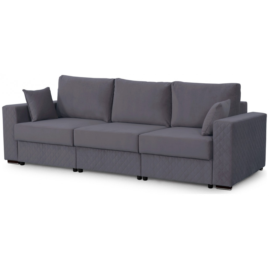 Диван может трансформироваться в угловой левый диван, угловой правый и П-образный диван. Это дает возможность его разнообразного использования. Малые декоративные подушки входят в комплект дивана.