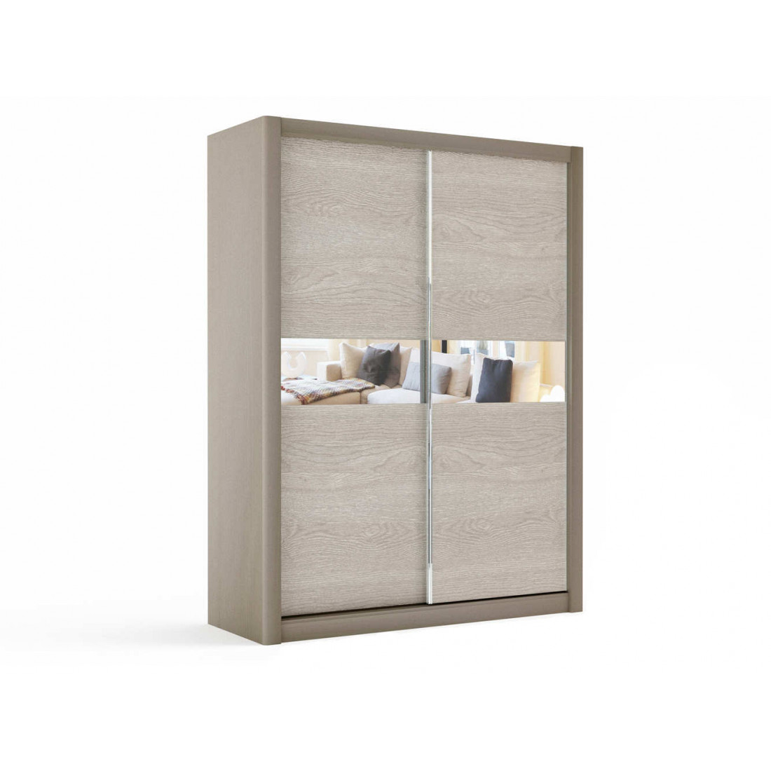 Шкаф-купе двухдверный Лацио является представителем спальни «Лацио». Спокойные тона и фактуры спальни располагают у отдыху, делают пространство легким и уютным. Сочетание глубокого серого и светлого оттенков исключают громоздкость и помогают достичь эффекта зрительного увеличения пространства. Приобретение «Лацио» гарантирует покупателю визуальную эстетику, а так же удобство и практичность применения.