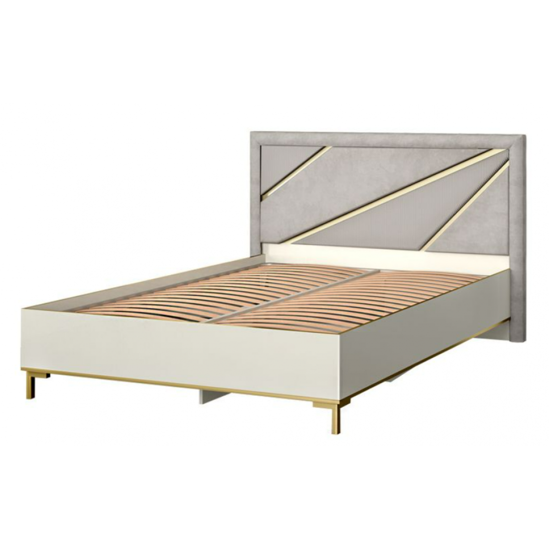 Сочетание фактурных тканей с декоративной планкой золотистого цвета выглядит стильно