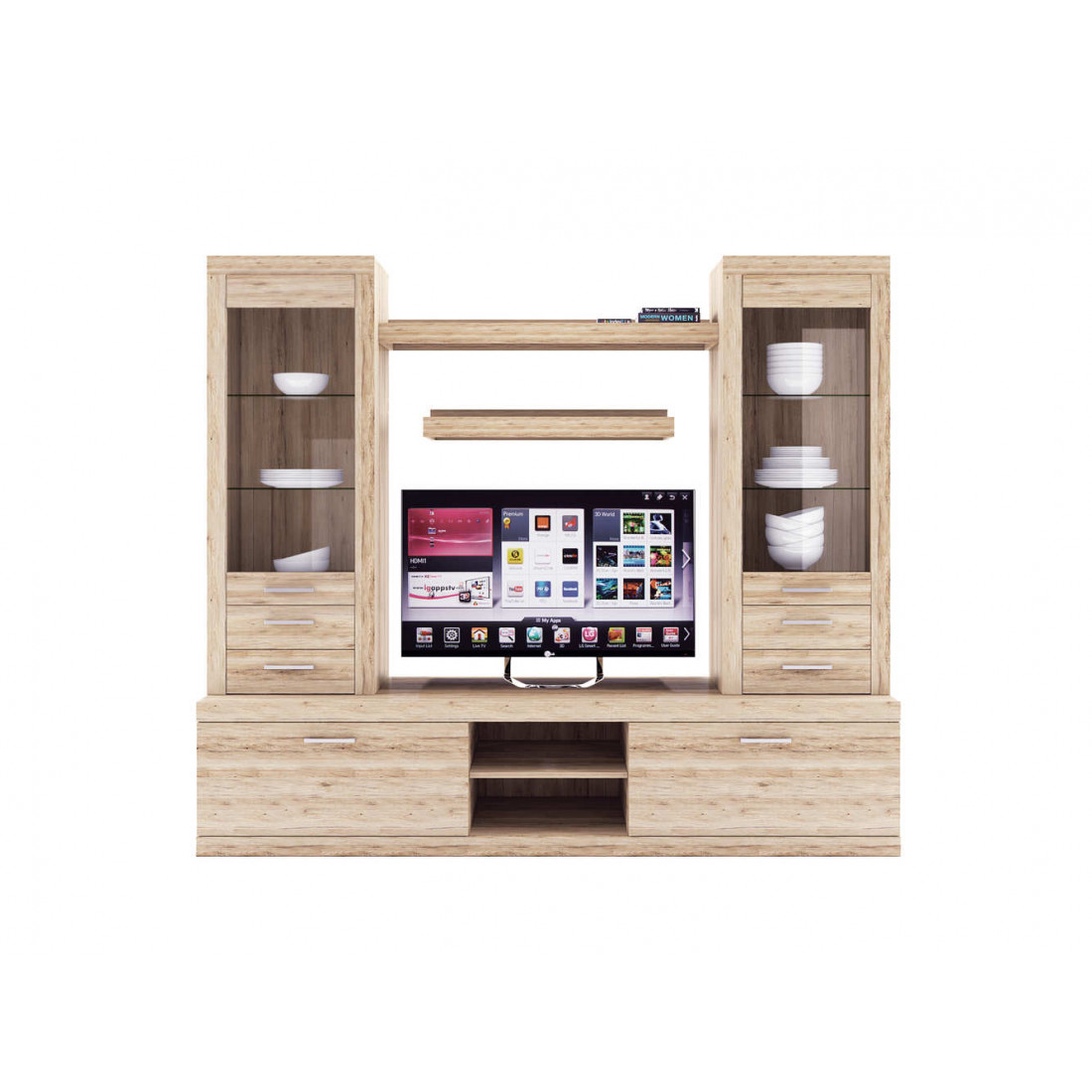 2. 4 варианта тумб RTV с выдвижными ящиками на шариковых направляющих. 2 размера надставных полок для RTV-тумб (полка TVB и полка TV), позволяющих установить выше телевизор. Варианты навесных полок, соответствующих по размеру тумбам для телевизора. Тумба RTV 2S2NL имеет глубину 351 мм, что позволяет составить модули, имеющие такую же глубину, в одну линию без выступающих элементов.