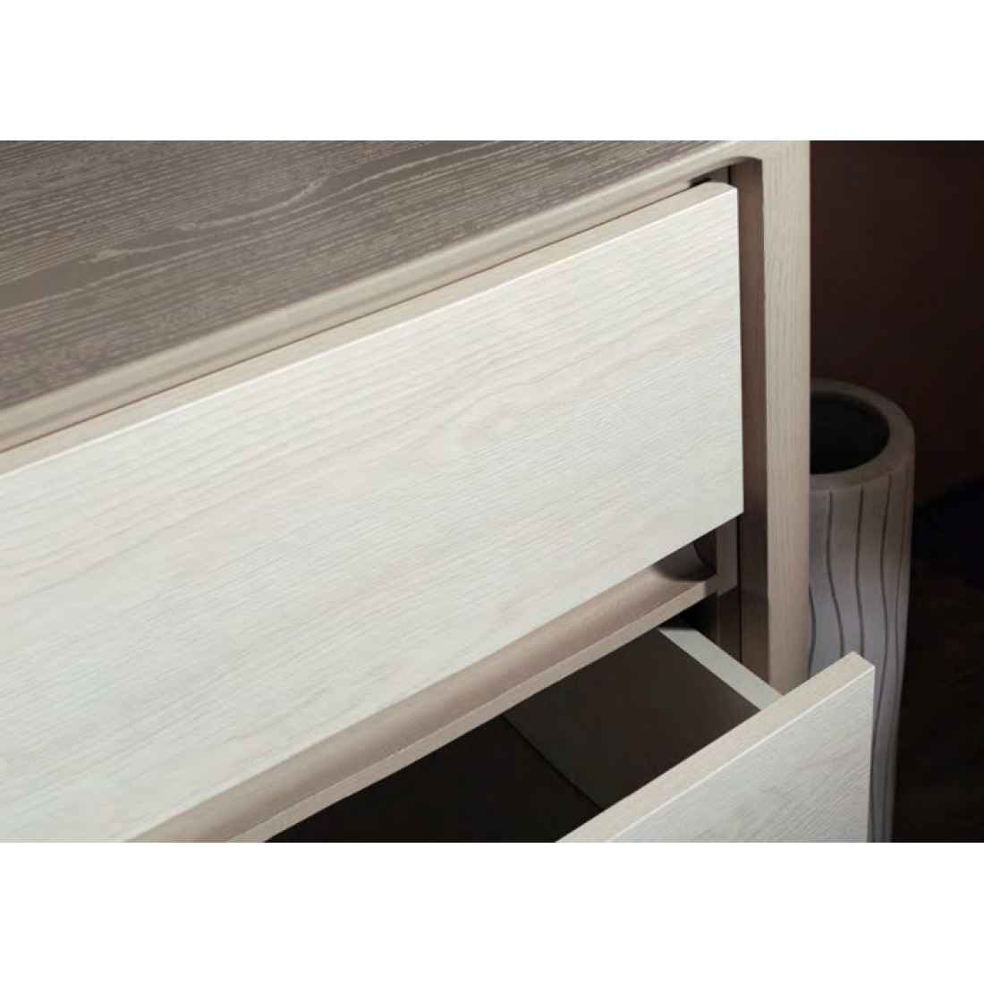Комод Лацио является представителем спальни «Лацио». Спокойные тона и фактуры спальни располагают у отдыху, делают пространство легким и уютным. Сочетание глубокого серого и светлого оттенков исключают громоздкость и помогают достичь эффекта зрительного увеличения пространства. Приобретение «Лацио» гарантирует покупателю визуальную эстетику, а так же удобство и практичность применения.