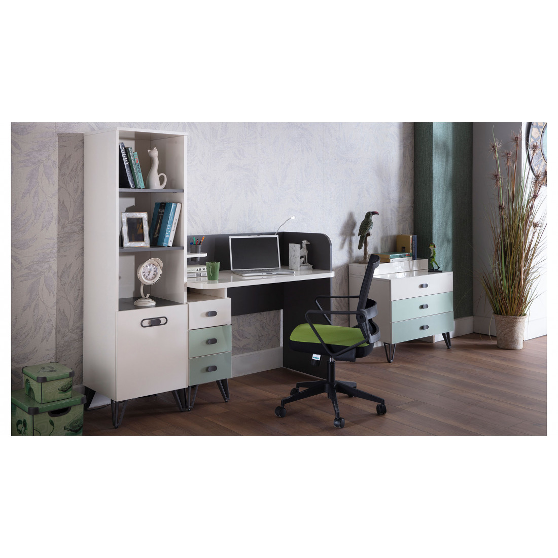 ВЕРХНИЙ ЯЩИК ЦВЕТА СЛОНОВОЙ КОСТИ, СРЕДНИЙ ЯЩИК СВЕТЛО-ЗЕЛЕНЫЙ,НИЖНИЙ ЯЩИК ТЕМНО-ЗЕЛЕНЫЙ.