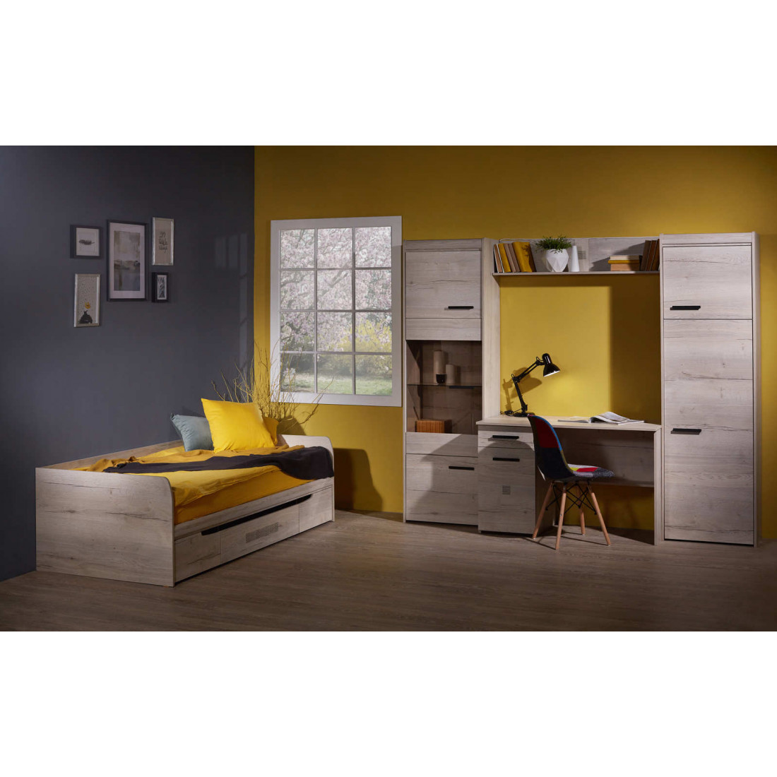 Детская «Мале» - обладательница лаконичного и свежего дизайна. Особое внимание привлекают тактильные ощущения от прикосновения к мебели. Декор и структуры, схожие с натуральным деревом по рисунку и шероховатости, придают глубину и естественность. Широкий спектр модулей позволит эргономично использовать Ваше пространство.