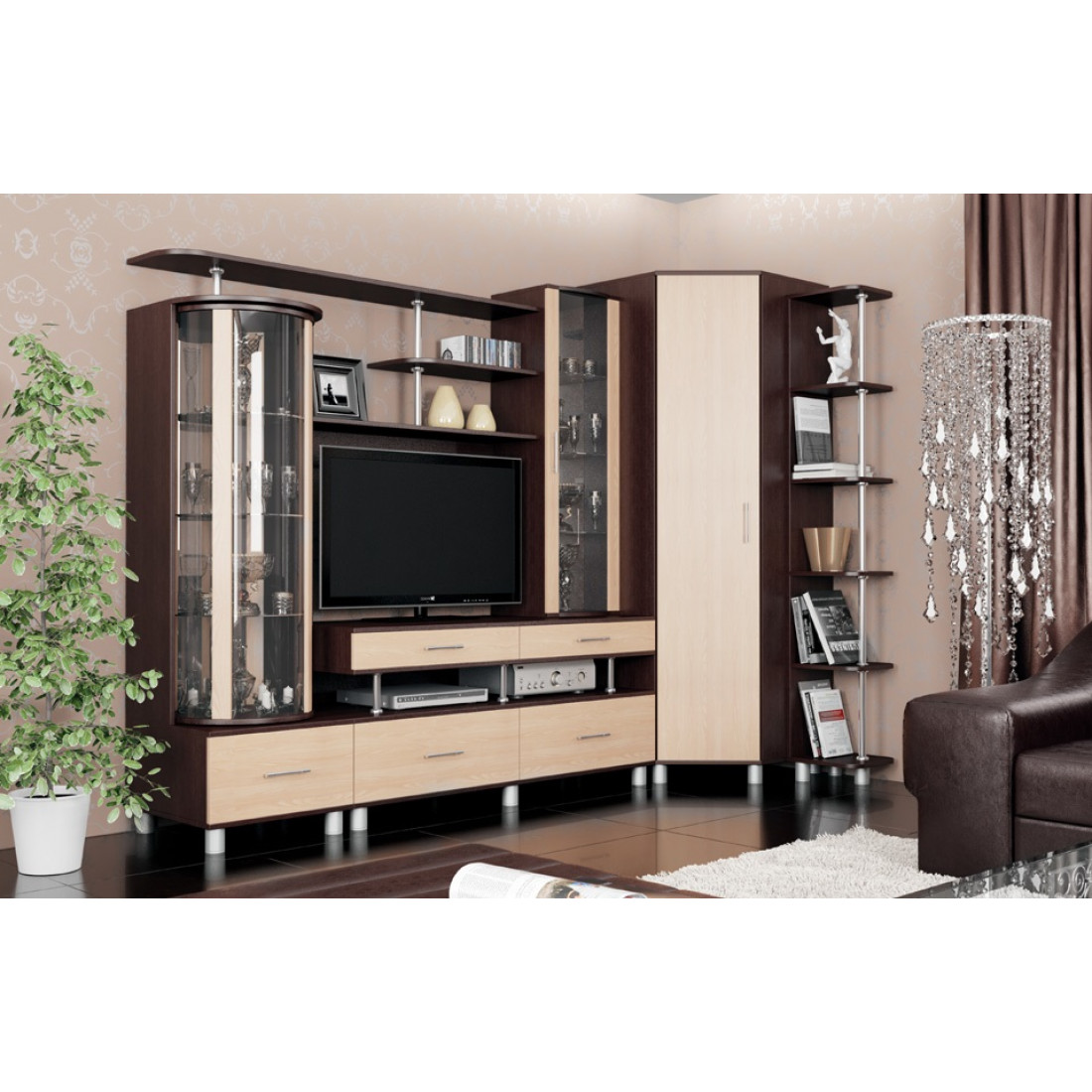 Современная модульная стенка «Лима» сочетает в себе последние тенденции мебельной индустрии. Тумба с поворотным баром, тумба под телевизор, пенал для посуды, - все это займет достойное место в Вашей гостиной. Также стенка «Лима» дополнительно может комплектоваться следующими модулями: пеналом для одежды, платяным шкафом, угловым шкафом и приставкой. Каждая из этих деталей подарит дополнительный комфорт и эффектно впишется в интерьер комнаты. Изящное цветовое исполнение Дуб Молочный / Венге Мали достаточно гармонично и не создаст проблем в сочетании с другими предметами мебели и обшей обстановкой помещения.