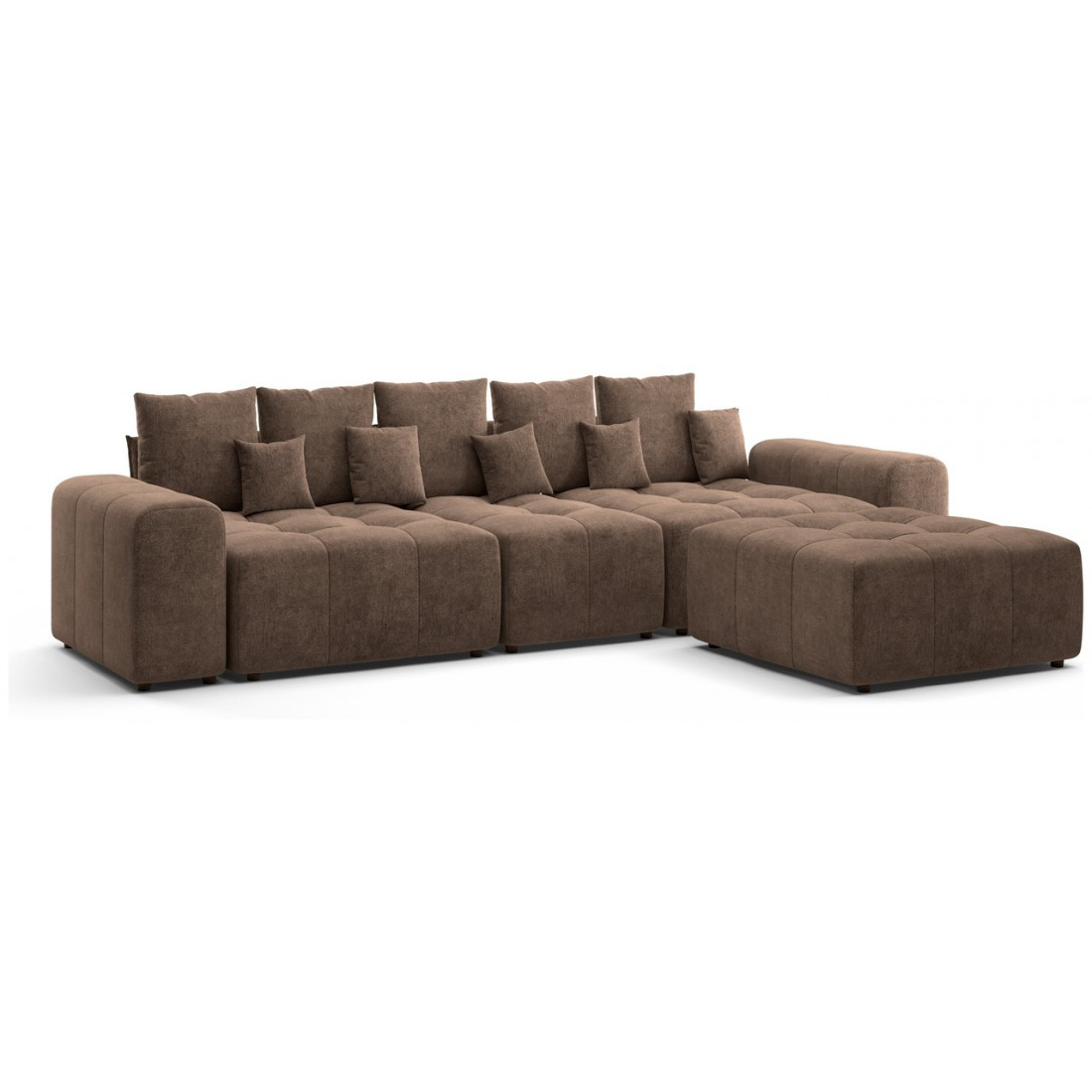 Модульный диван «Торонто» — это отличный вариант для тех, кому сложно подобрать монолитную конструкцию из-за сложной конфигурации помещения, а также тех, кто любит экспериментировать и часто делает перестановку. С его помощью можно легко изменить интерьер, превратив часть конструкции в пуф, кресло или софу.