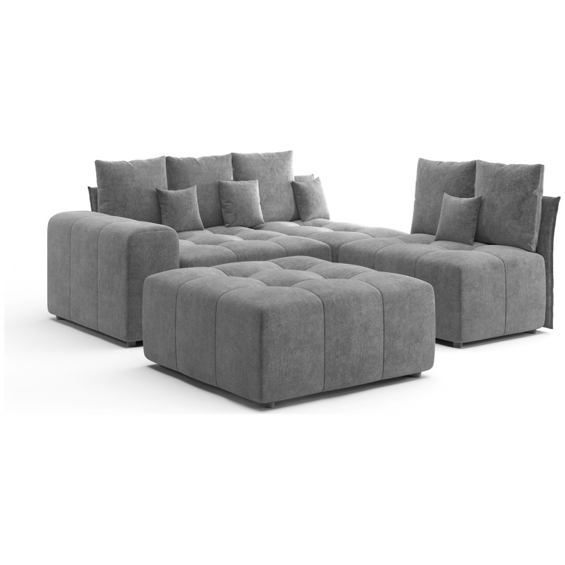 Модульный диван «Торонто» — это отличный вариант для тех, кому сложно подобрать монолитную конструкцию из-за сложной конфигурации помещения, а также тех, кто любит экспериментировать и часто делает перестановку. С его помощью можно легко изменить интерьер, превратив часть конструкции в пуф, кресло или софу.