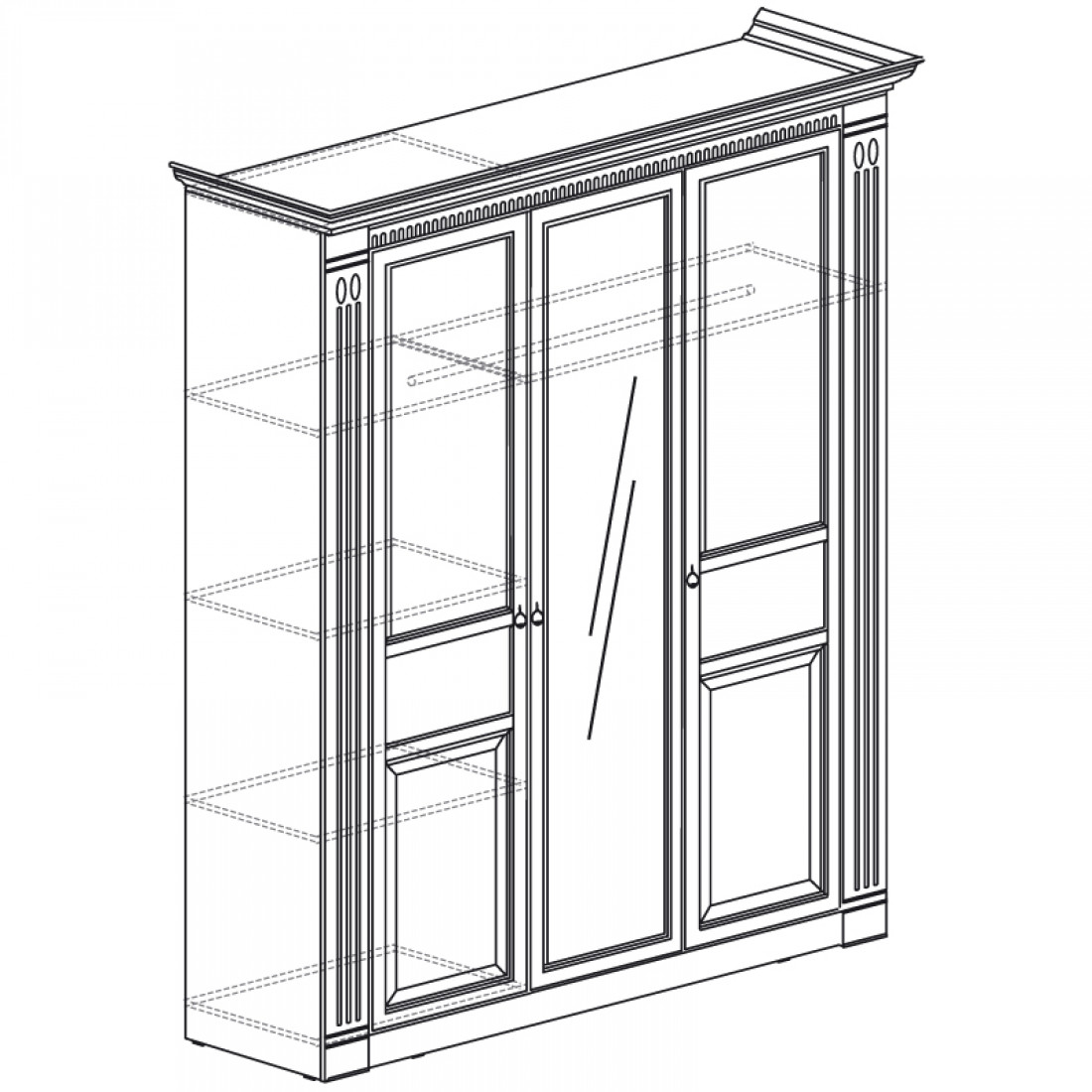 Фасады: МДФ, декор – дуб оксфорд, патина, зеркало с фацетом