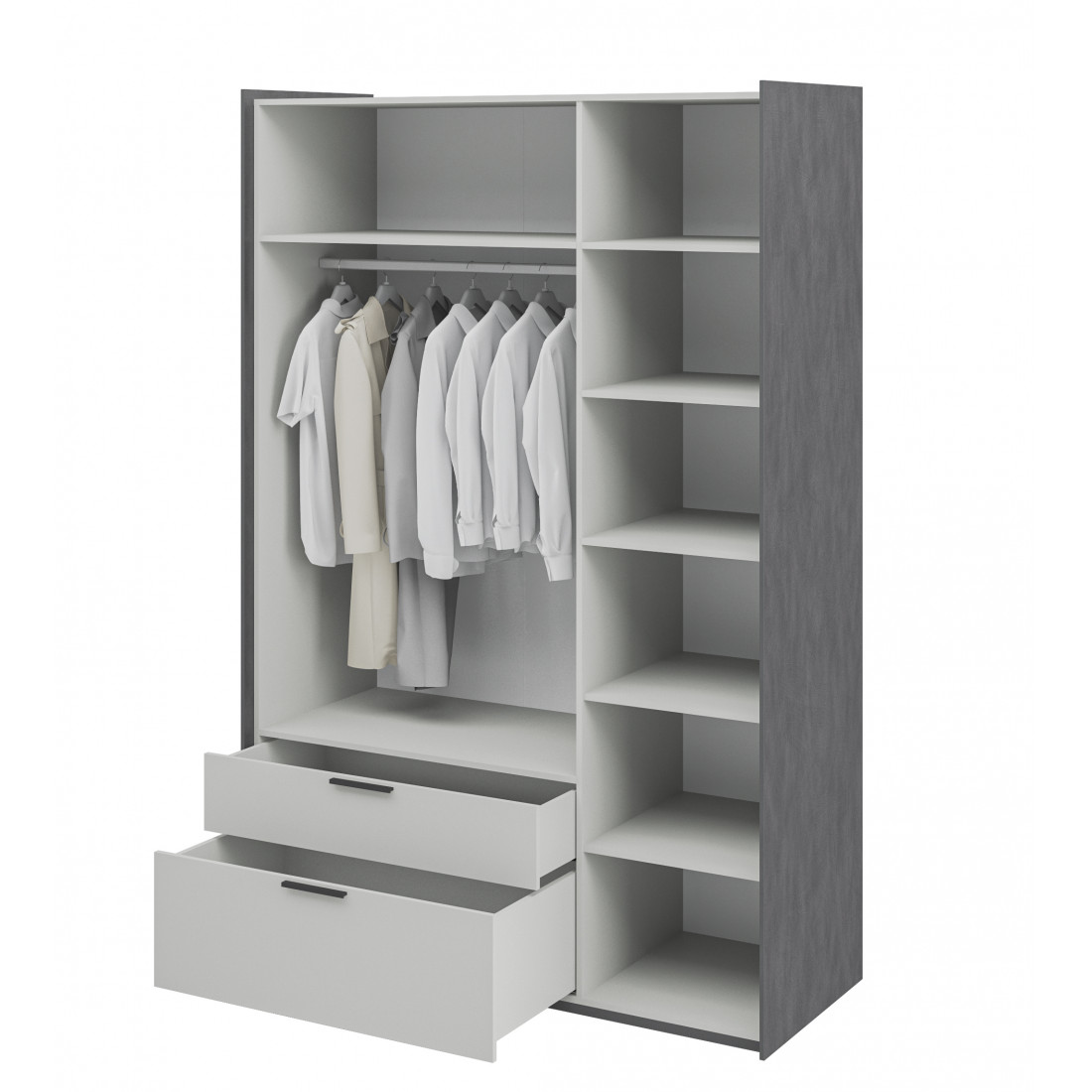Элегантный шкаф Модена создает изысканную атмосферу в вашей спальни. Предлагается в трех стильных вариантах цветов: Белый-Дуб Элисон, Лунный камень-жемчуг, Металл Бруклин-лунный жемчуг.