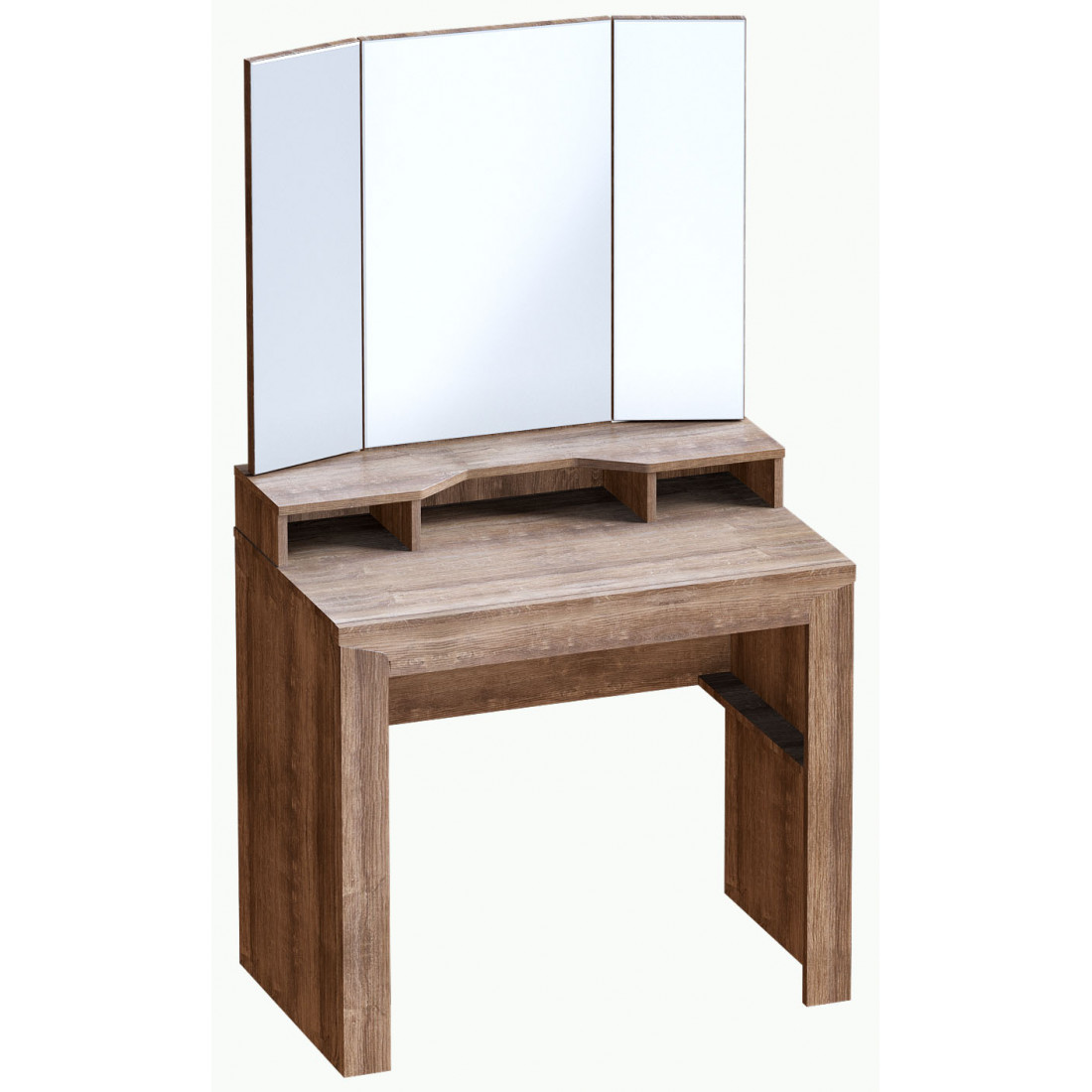 Туалетный столик с зеркалом из коллекции Соренто Дуб стирлинг порадует ценителей лаконичных форм своими простыми, современными линиями и приятной светлой деревянной текстурой,создающей чувство покоя и комфорта в вашем доме. Удобная рабочая поверхность с дополнительной надстройкой позволит держать необходимые вещи под рукой, а выдвижной ящик служит отличным органайзером для хранения мелочей, косметики, украшений и аксессуаров.