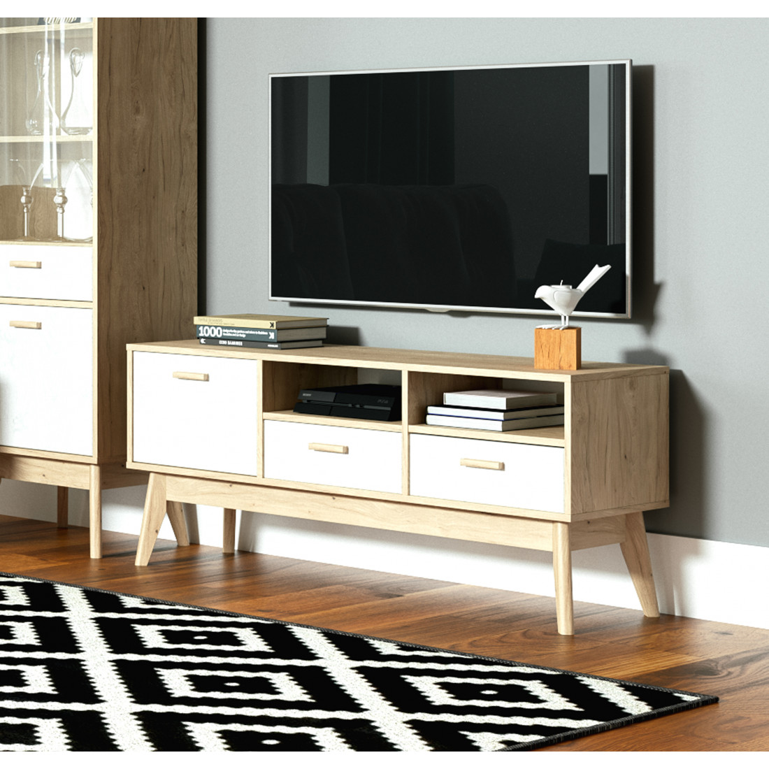 Ультратрендовая тумба Калгари от Мебельград, выполненная в светлых тонах с элементами сдержанного стиля 60-х - высокие ножки, выраженная деревянная текстура натурального дуба, четкие формы. Вся мебель очень мобильная, компактная, вызывает чуство легкости и свободного пространства, при этом она функциональна.