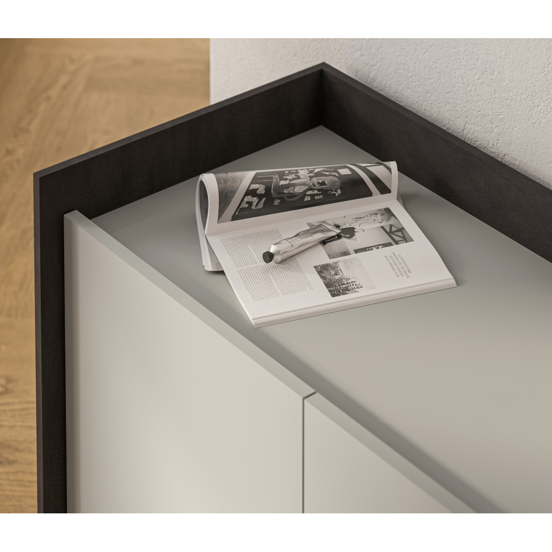 Материал фасада: ЛДСП 16 мм, цвет Дуб Элисон, Жемчуг, Лунный камень